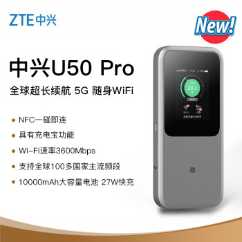 中兴(ZTE)5G随身WiFi6/10000毫安移动插卡路由