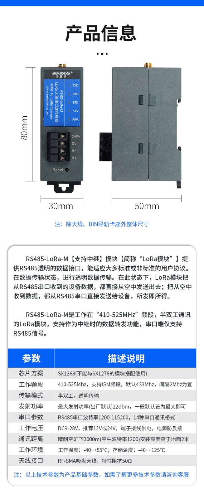 艾莫迅LORA工业无线透传远程通信模块485串口收发433M