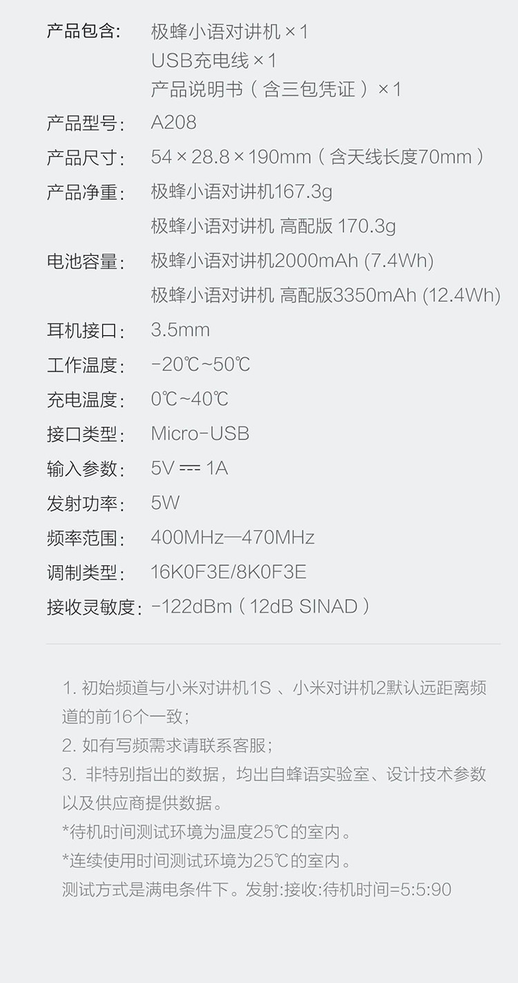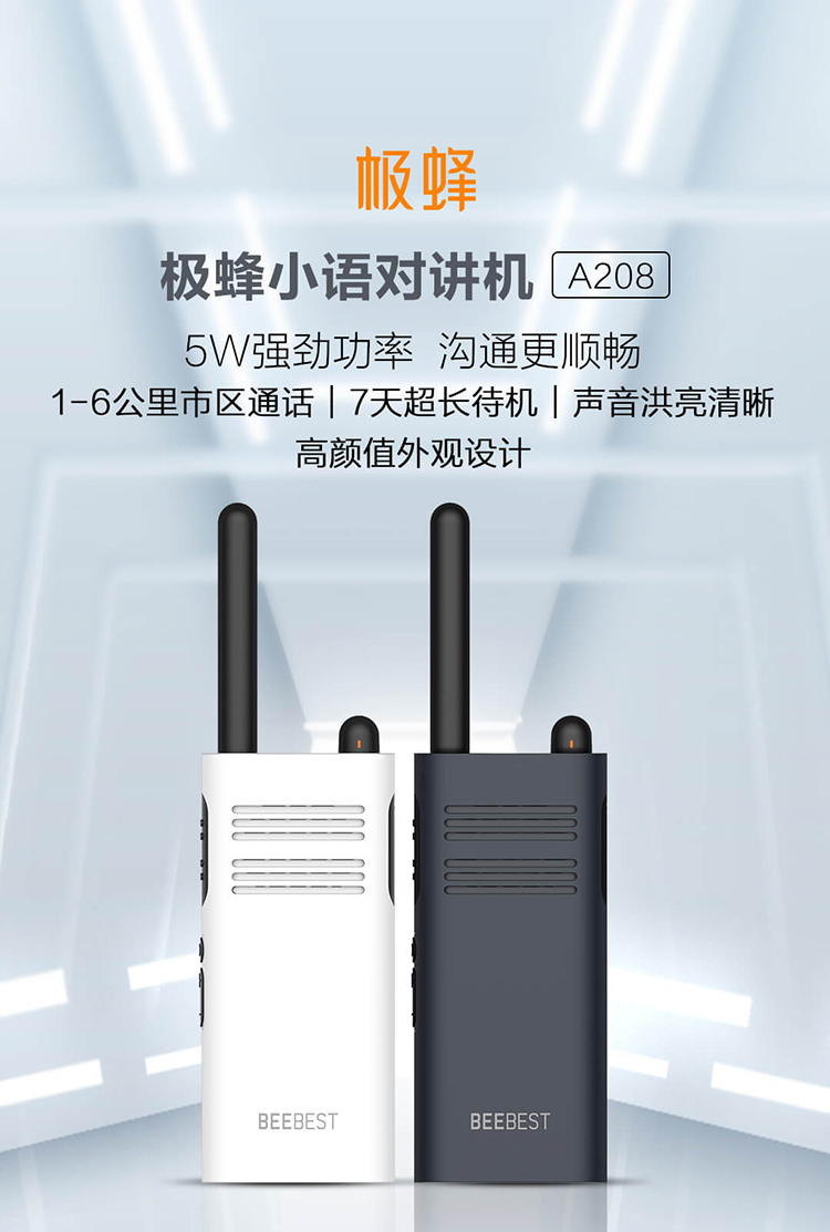 极蜂BeeBest罗永浩推荐小语模拟对讲机A208户外车载大