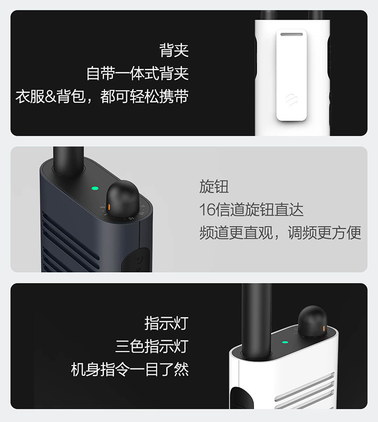 小米对讲机2黑色支持蓝牙耳机超长待机户外酒店自驾游民用手台