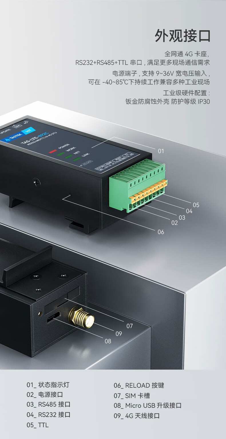 4g模块dtu无线通信物联网透传双485通讯gprs设备远程