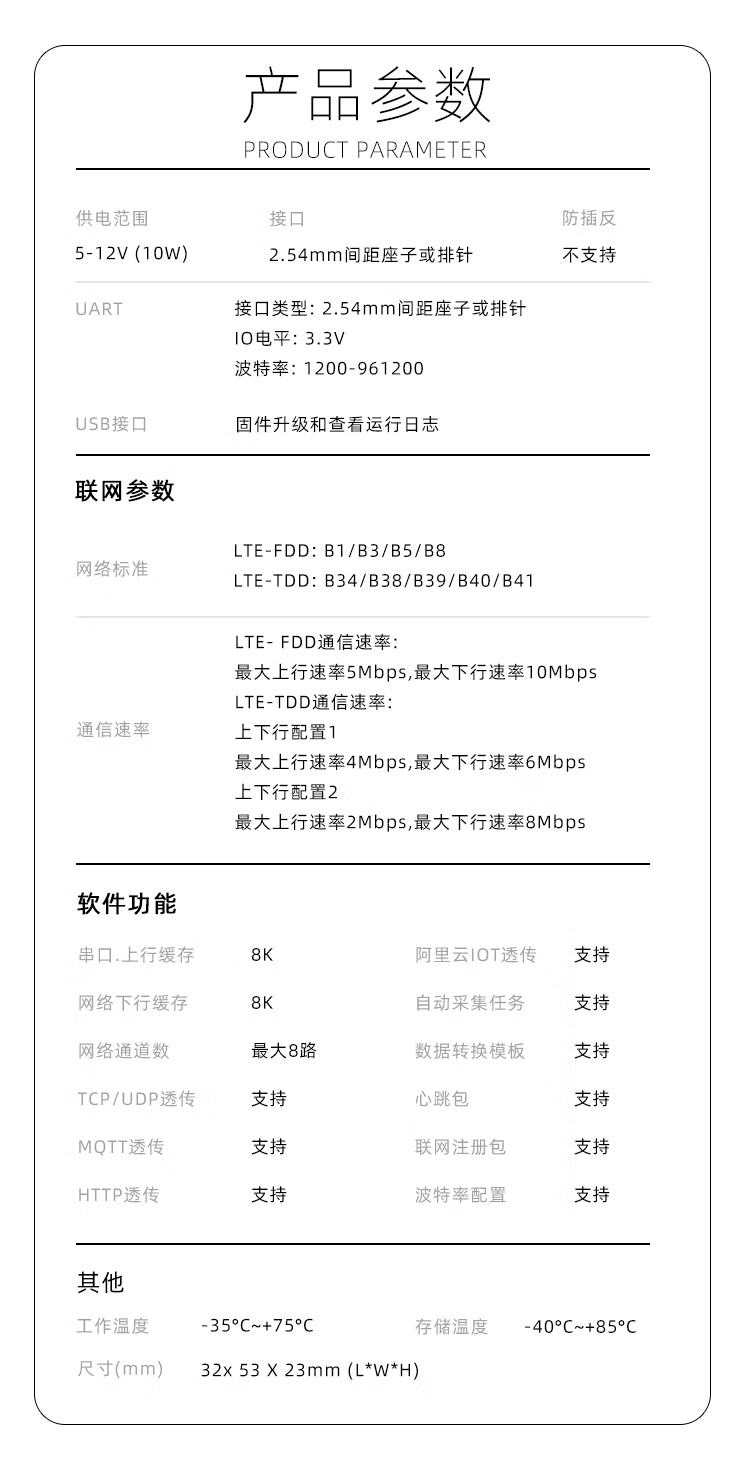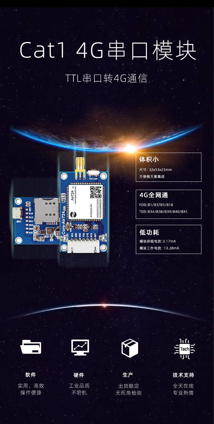 莱菁栎莱菁栎适用合宙4gdtu模块Cat.1透传设备通无线通
