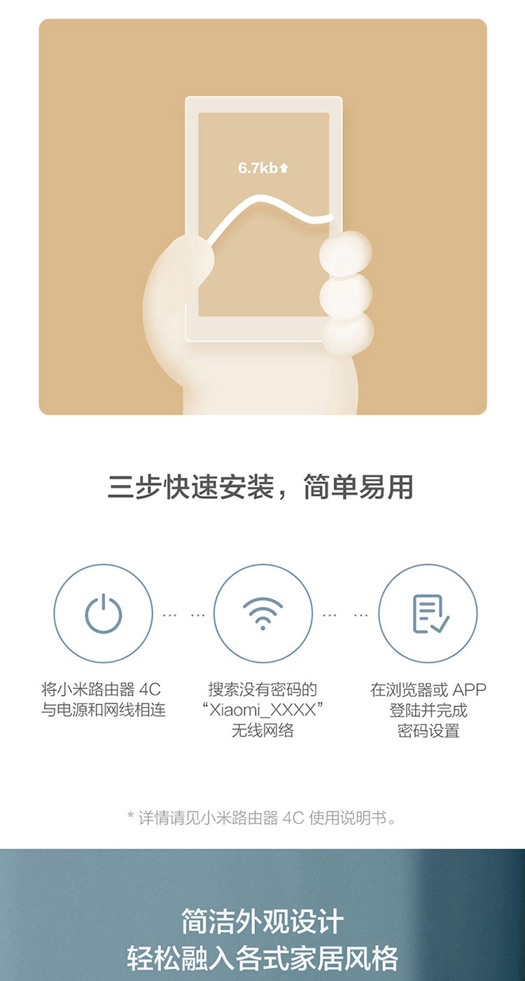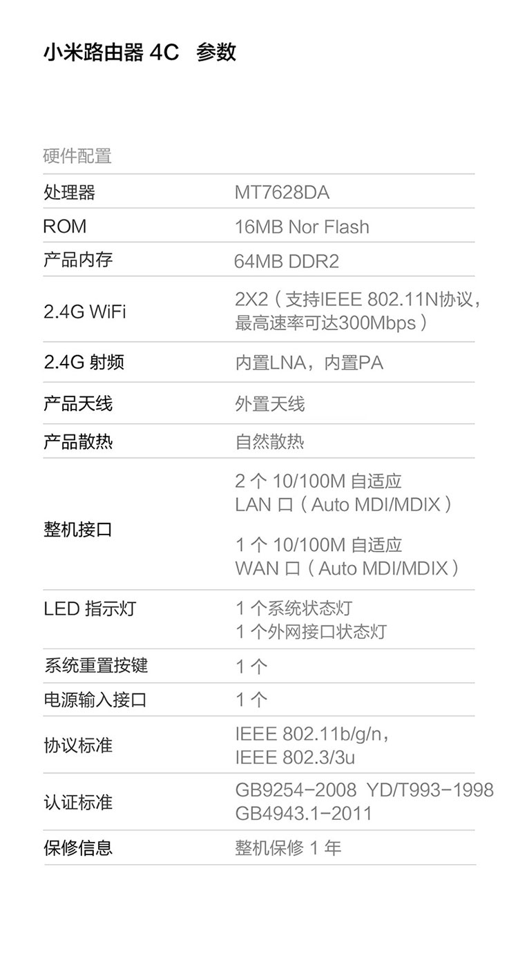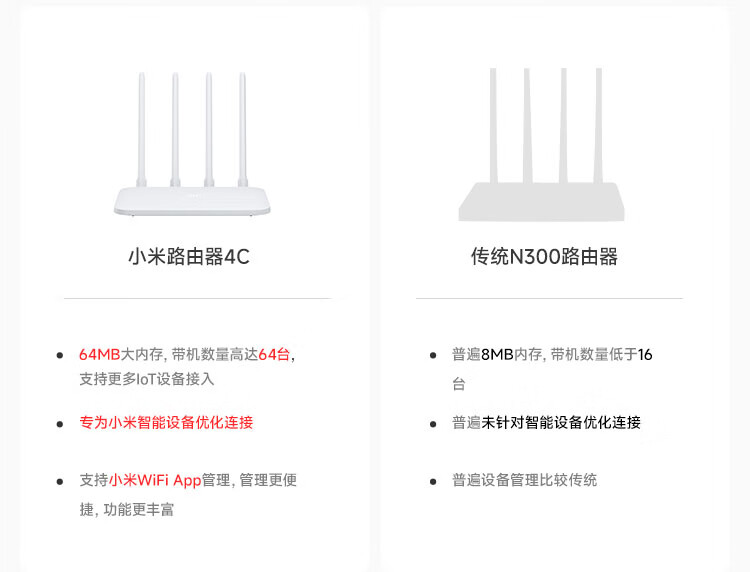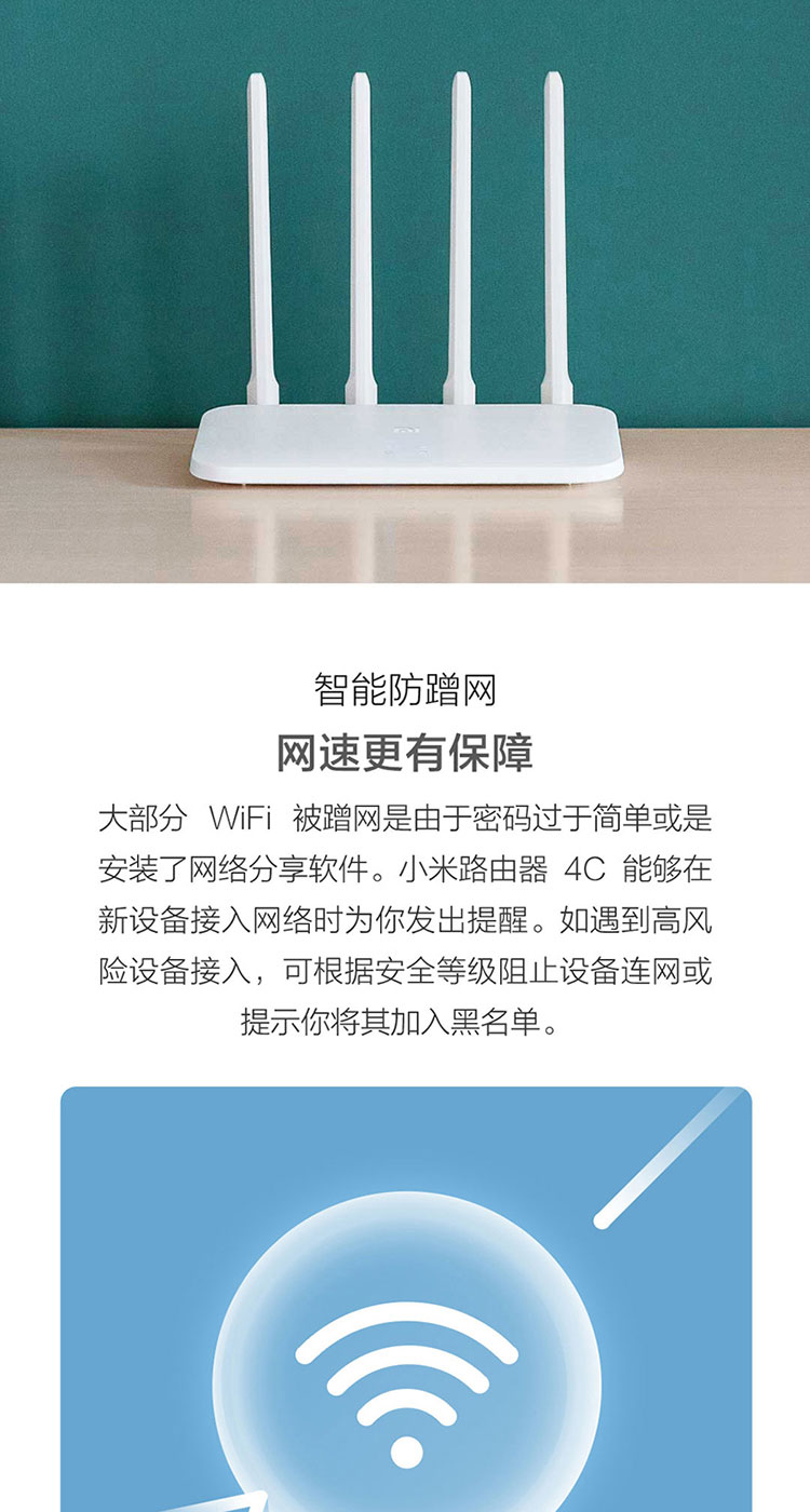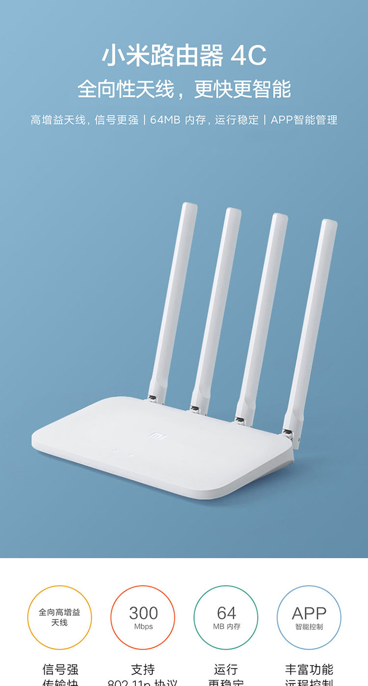小米(MI)路由器4C300M无线速率智能家用路由器安全稳定