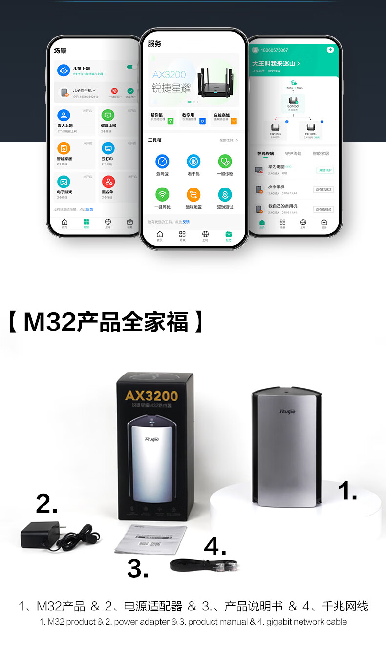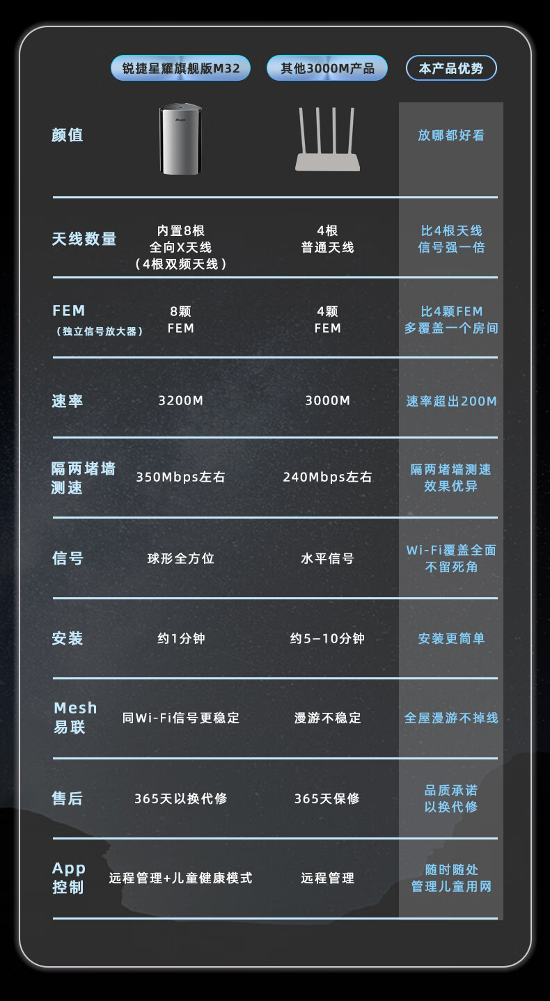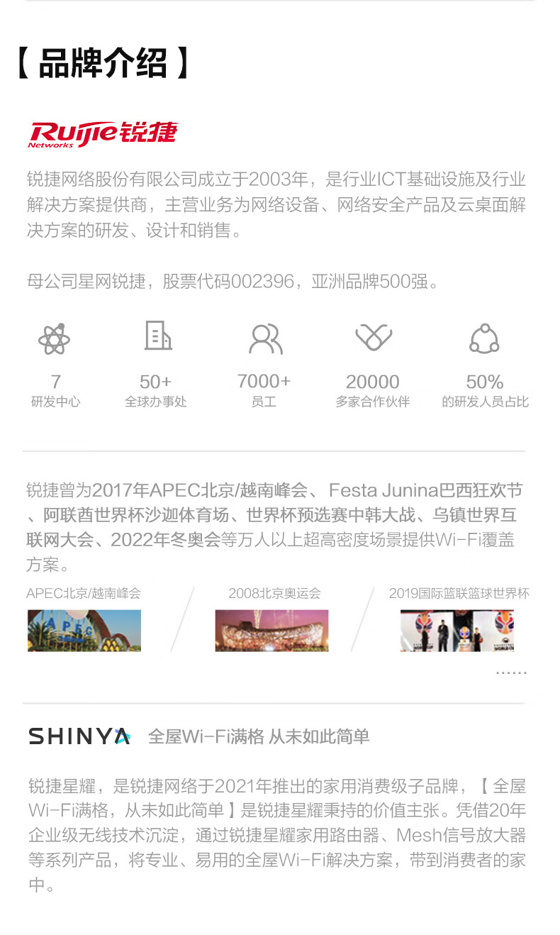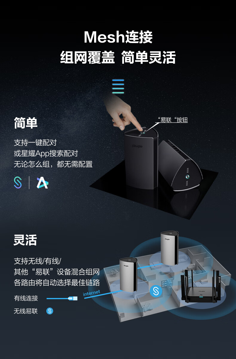 锐捷(Ruijie)无线路由器千兆全屋WIFI6Mesh路由