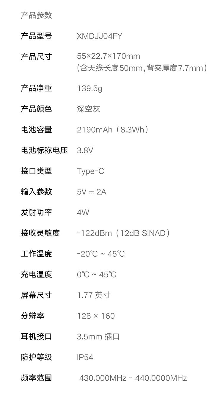 小米对讲机2黑色支持蓝牙耳机超长待机户外酒店自驾游民用手台
