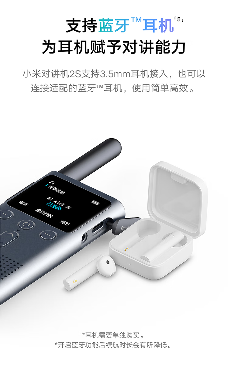 小米对讲机2S全新升级版超轻超薄蓝牙耳机超长待机户外酒店自驾