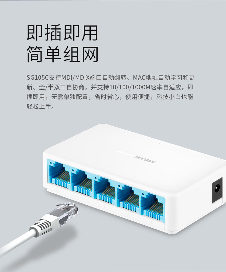 水星(MERCURY)SG105C5口千兆交换机4口网线网络