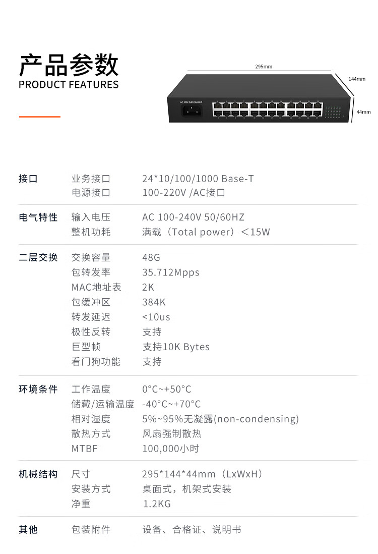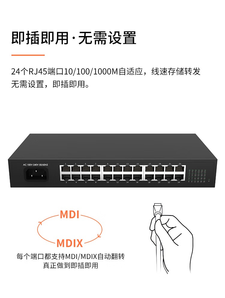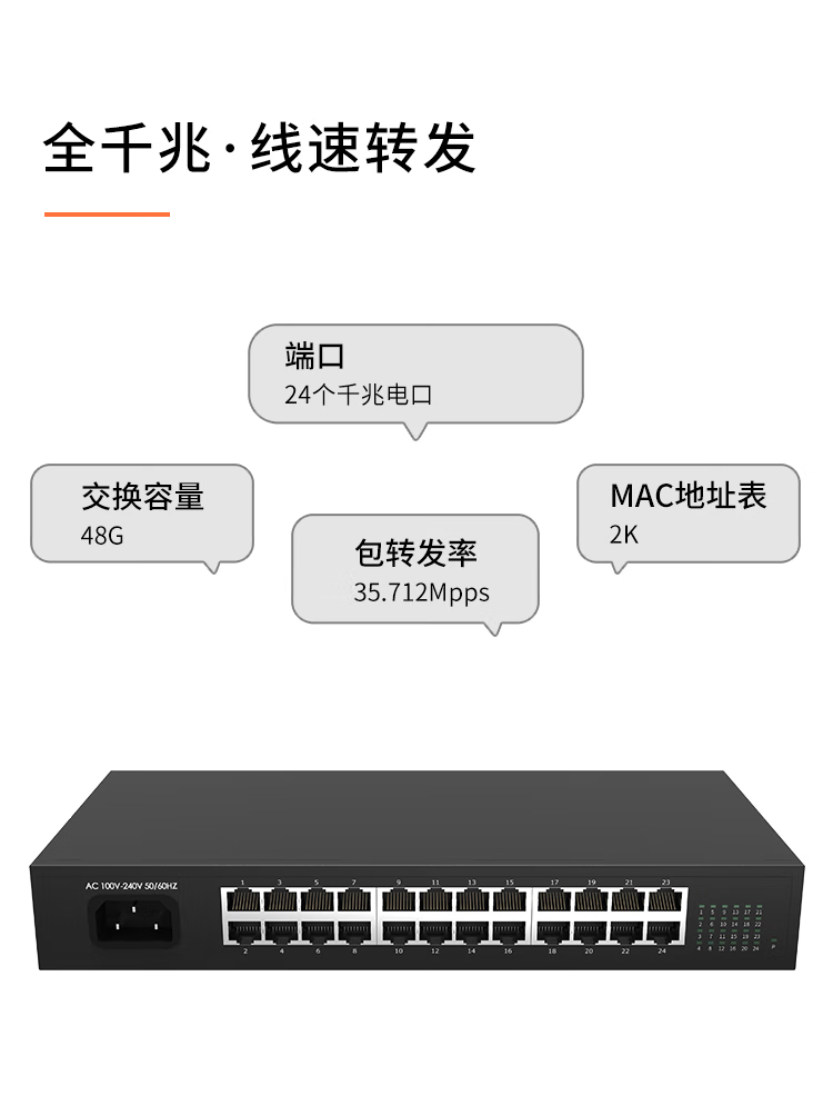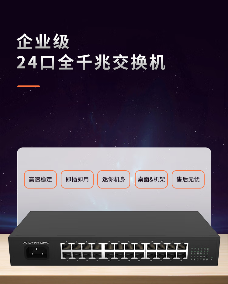 奥思凌科24口全千兆交换机企业级办公家用宿舍安防监控网络分线