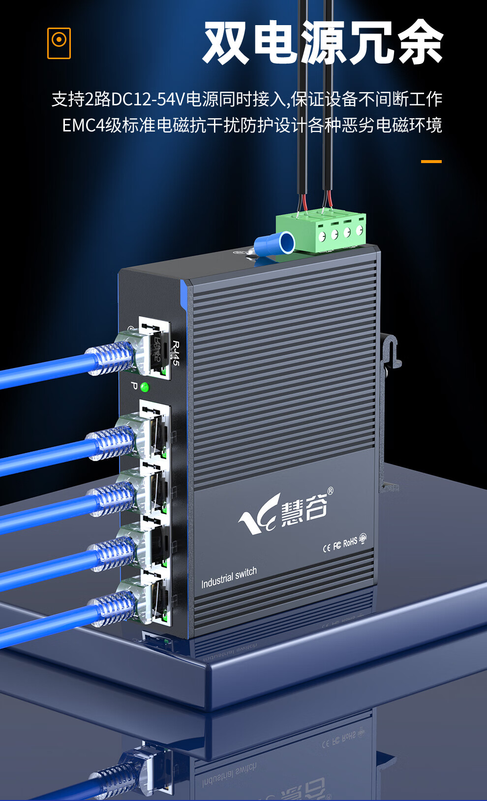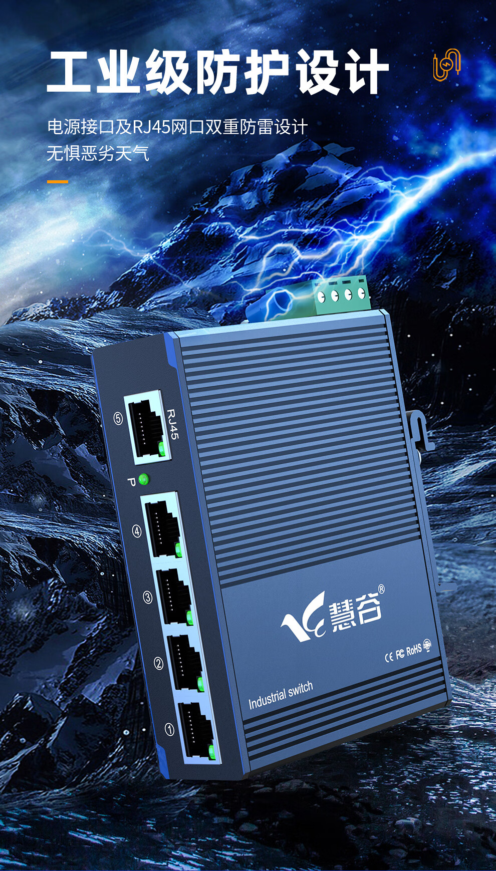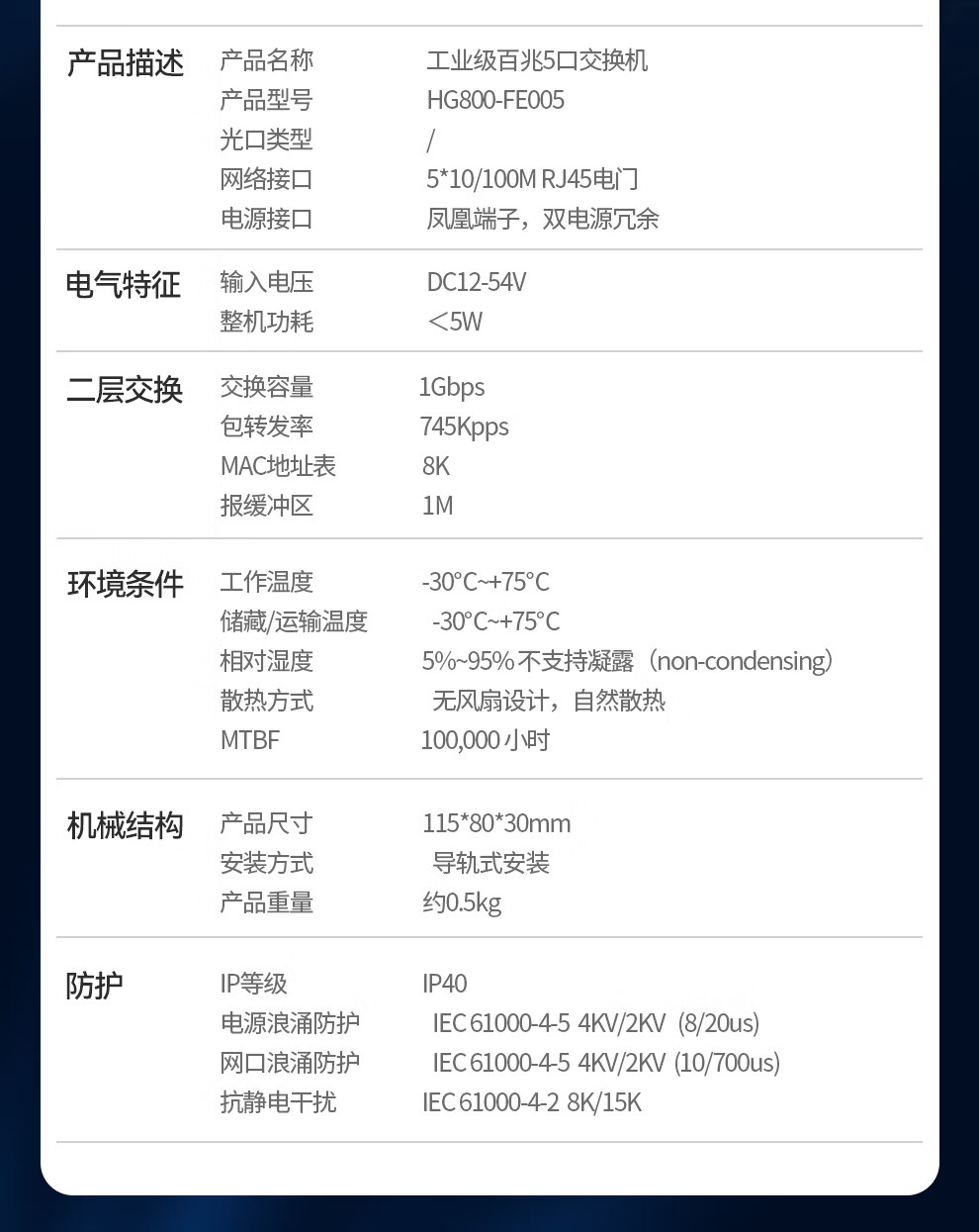 慧谷工业交换机5口百兆DIN导轨式不含电源HG800-FE0