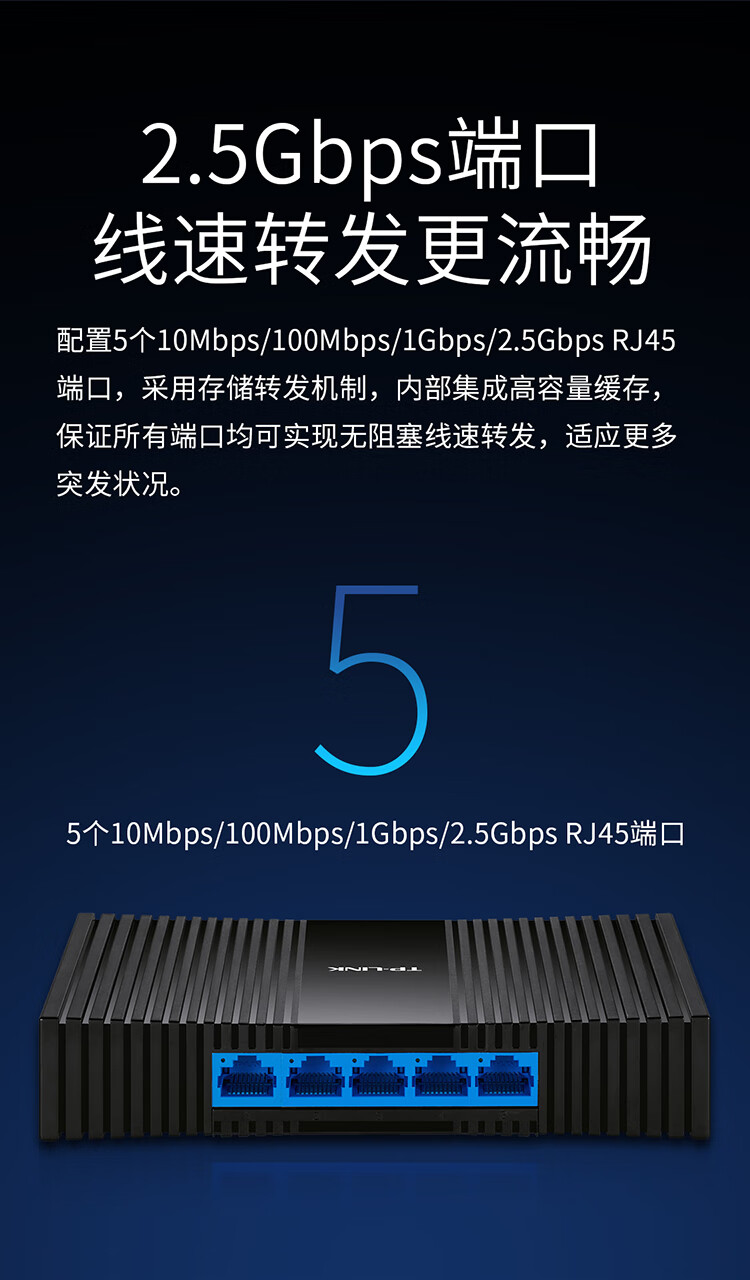 TP-LINK2.5G以太网交换机5口塑壳企业级交换器监控网