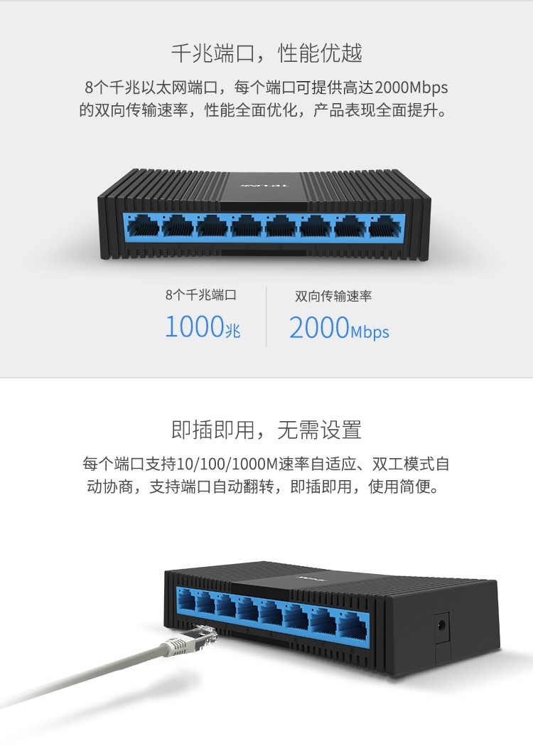 新华三(H3C)8口千兆交换机企业级交换器网络网线分线器分流