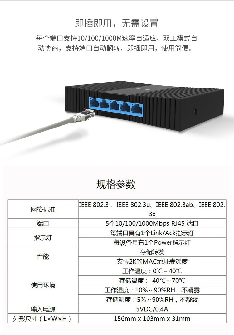 新华三(H3C)5口千兆非网管交换机企业级交换器网络网线分线