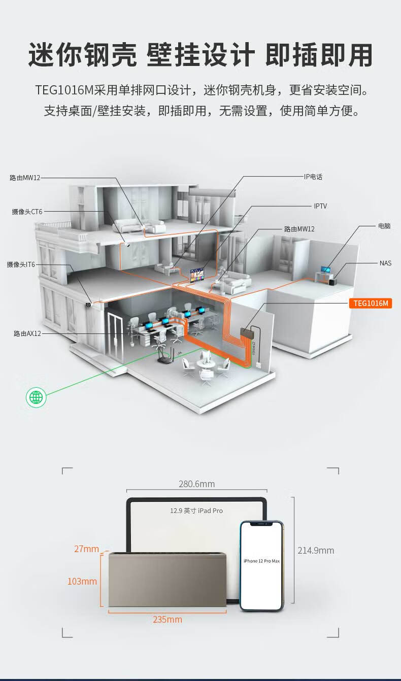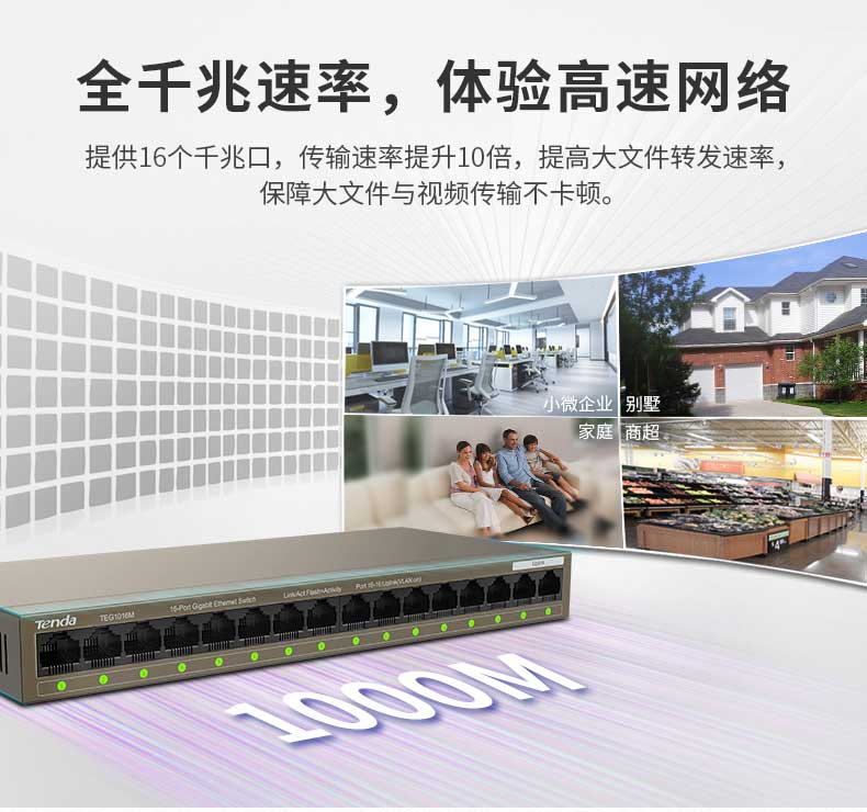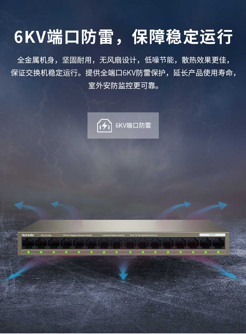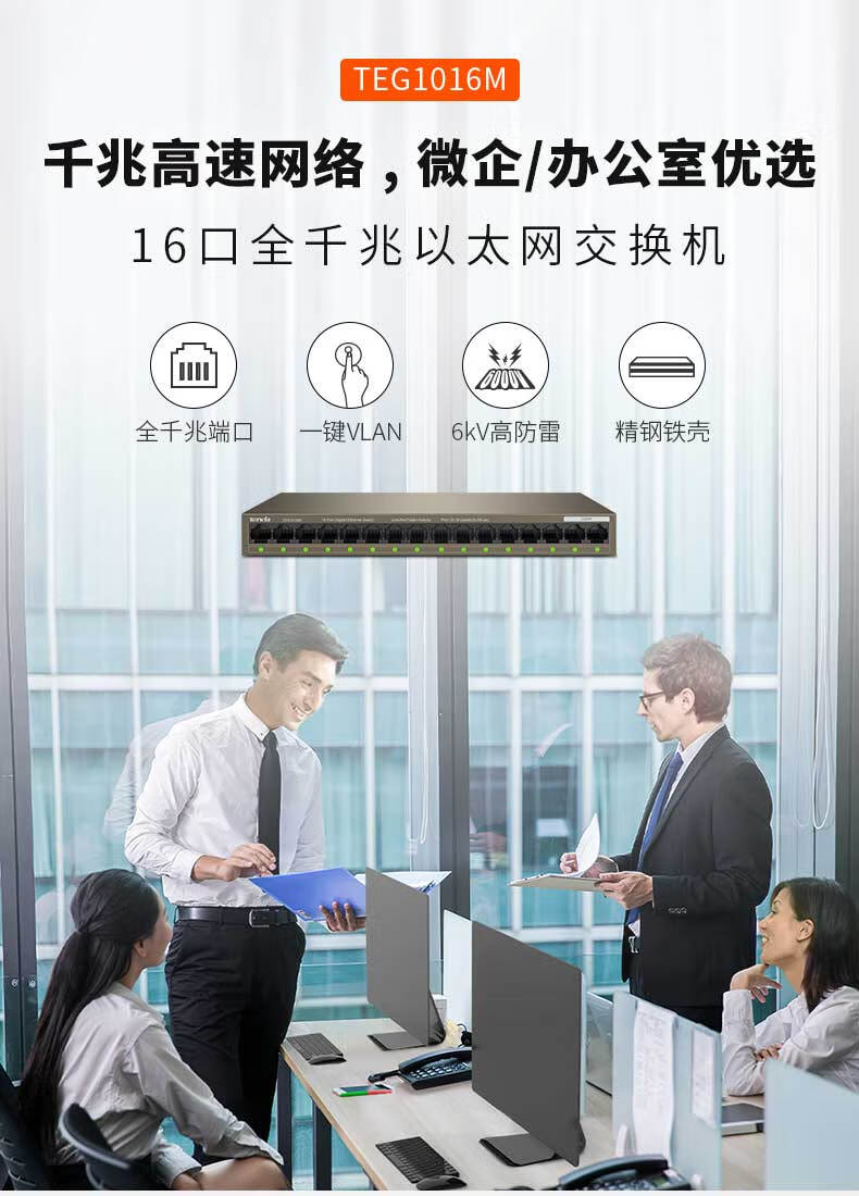腾达(Tenda)TEG1016M16口千兆交换机企业级交换
